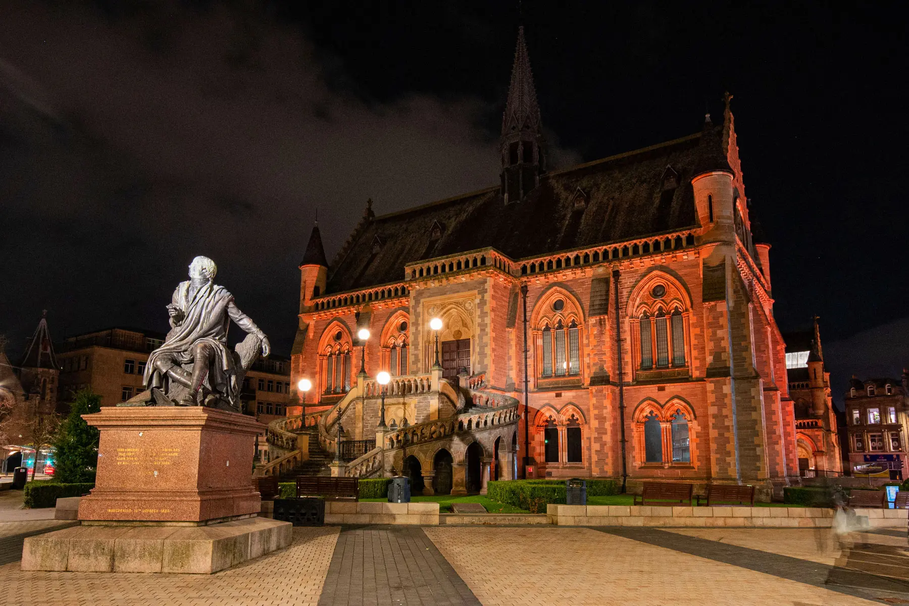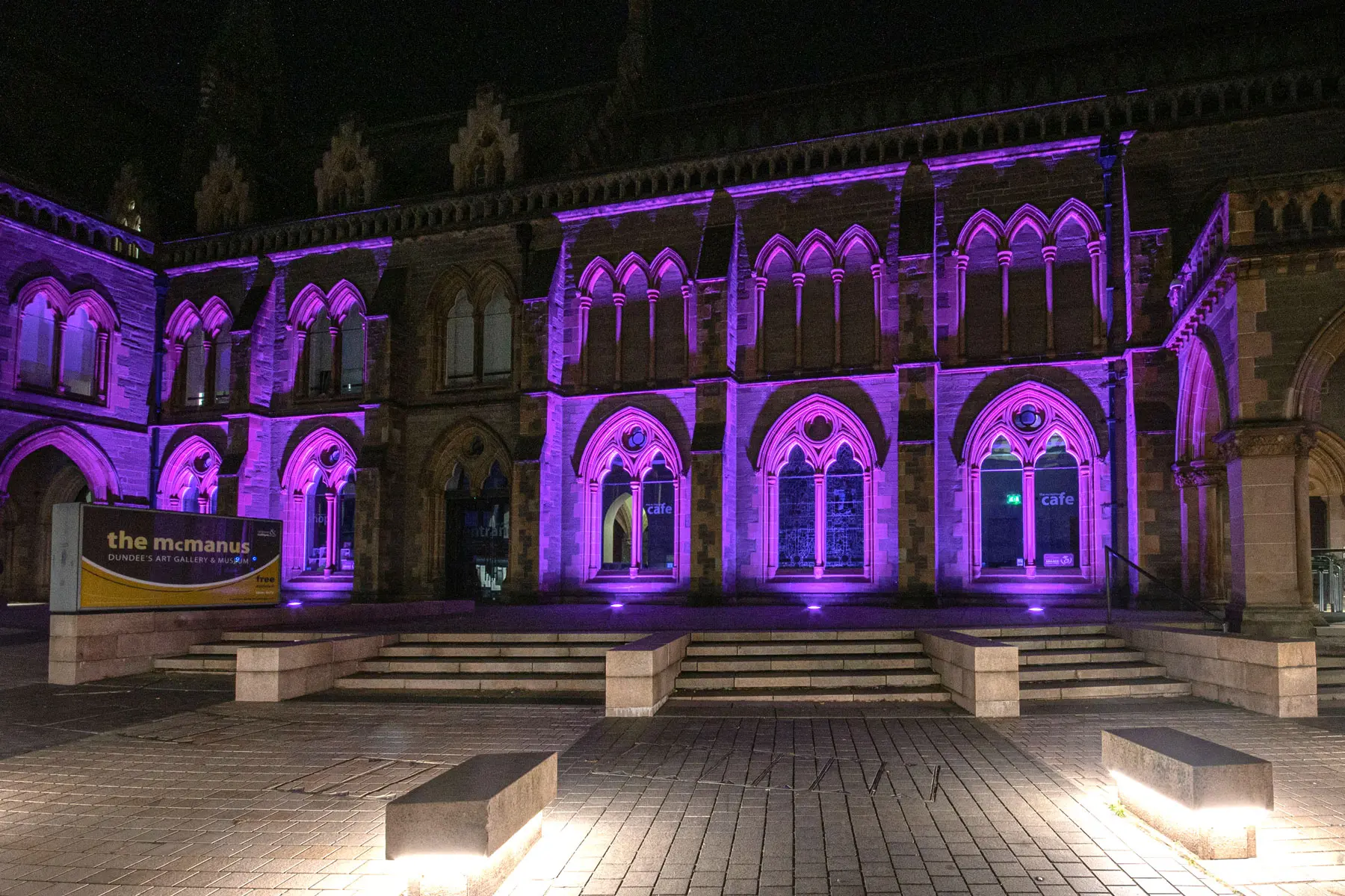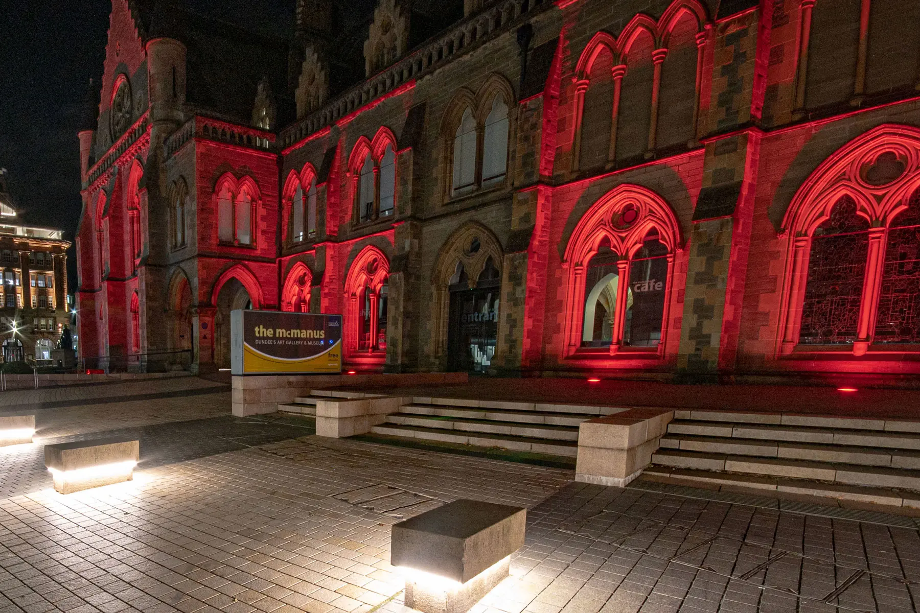 Per valorizzare la facciata neogotica, le sculture e gli spazi esterni, Dundee City Council ha affidato il progetto a LITE LTD, che ha scelto Studio Due come partner tecnologico per la fornitura dei corpi illuminanti.