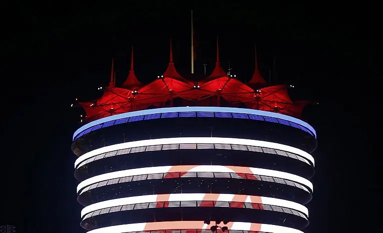 Obiettivo del progetto: La Torre Sakhir è un edificio simbolo ma quando il Circuito Internazionale del Bahrain ha introdotto le corse in notturna le luci bianche estremamente luminose richieste per illuminare il circuito di Formula1 hanno reso difficile la vista di questo importante edificio durante le trasmissioni televisive. Per tale Motivo BIC si è rivolto a Woodroffe Bassett Design per una soluzione video e di illuminazione in primis per far risaltare la torre rispetto alle luci del tracciato ed inoltre per rendere la forma e I colori della torre rappresentativi rispetto all’azione del circuito. Trattandosi di un simbolo nazionale è stato essenziale che l’elegante forma circolare della torre non venisse alterata nè sminuita dall’aggiunta della tecnologia video e illuminazione. Woodroffe Bassett Design ha ingaggiato Standard Vision come tecnici dei sistemi video. Ptarmigan Integration ha lavorato con la consulenza di Woodroffe Bassett Design per il controllo e l’integrazione dei sistemi. I contenuti sono stati creati da Dandelion + Burdock.