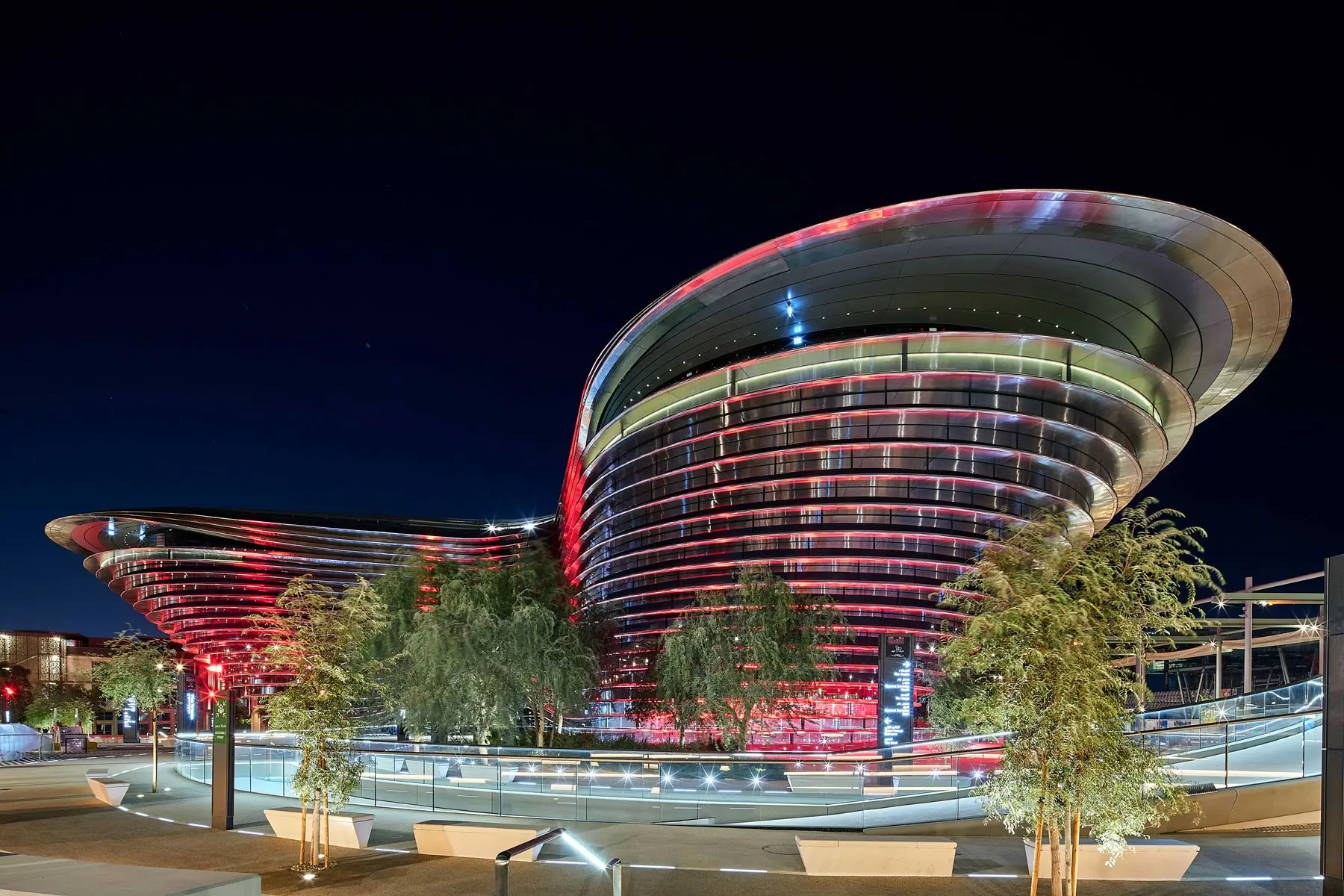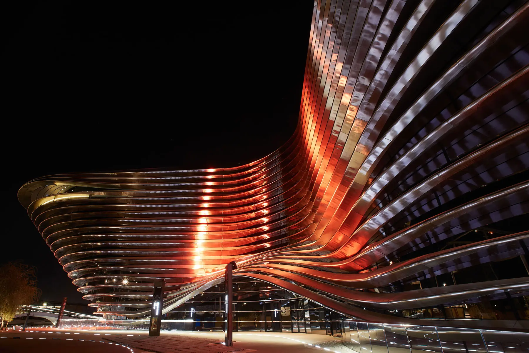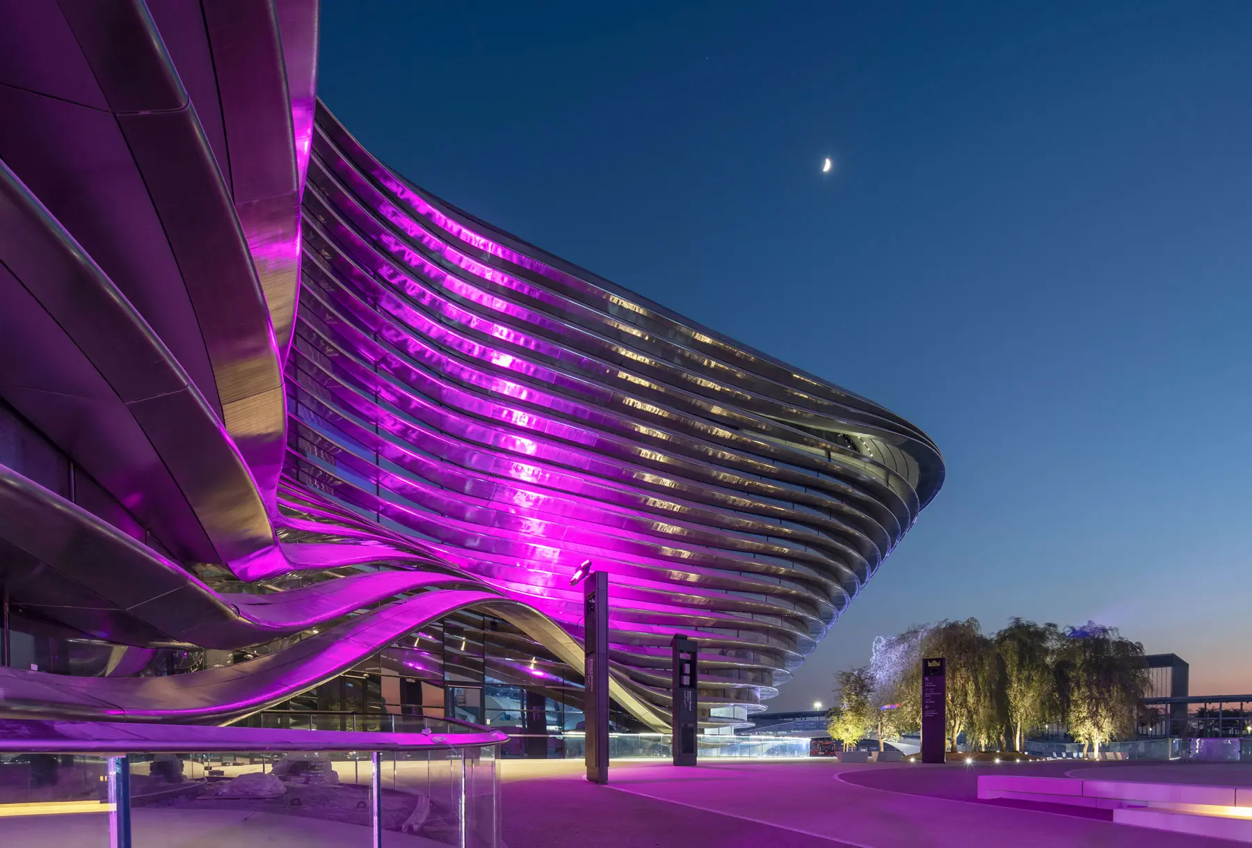 Studio Due è onorato di aver illuminato questo simbolo architettonico collaborando con i team visionari di David Atkinson Lighting Design (DALD) e Delta Lighting Practice, trasformando le sue forme fluide e i suoi paesaggi dinamici in uno spettacolo di luce vivente.